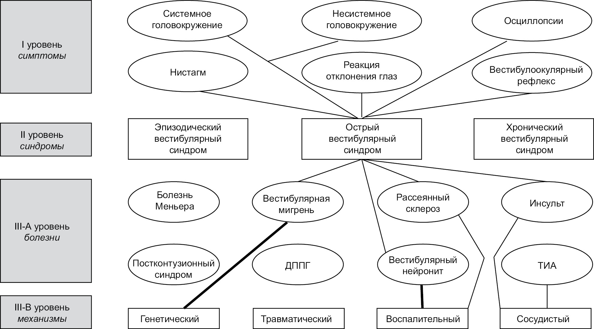 Тонкие линии отражают доказанные связи, а жирные линии соответствуют неподтвержденным связям. ДППГ – доброкачественное позиционное пароксизмальное головокружение; ТИА – транзиторная ишемическая атака.