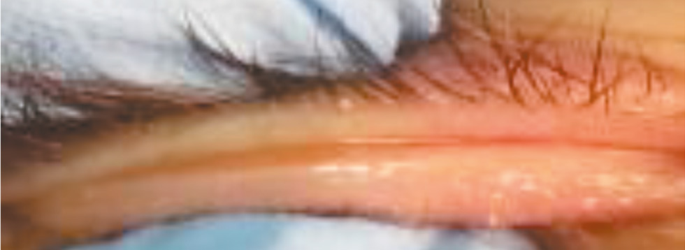 Fig. 2. Picture of the eyelid rib margin with almost complete absence of thick secretion in patient D. at the 4th week of follow-up.