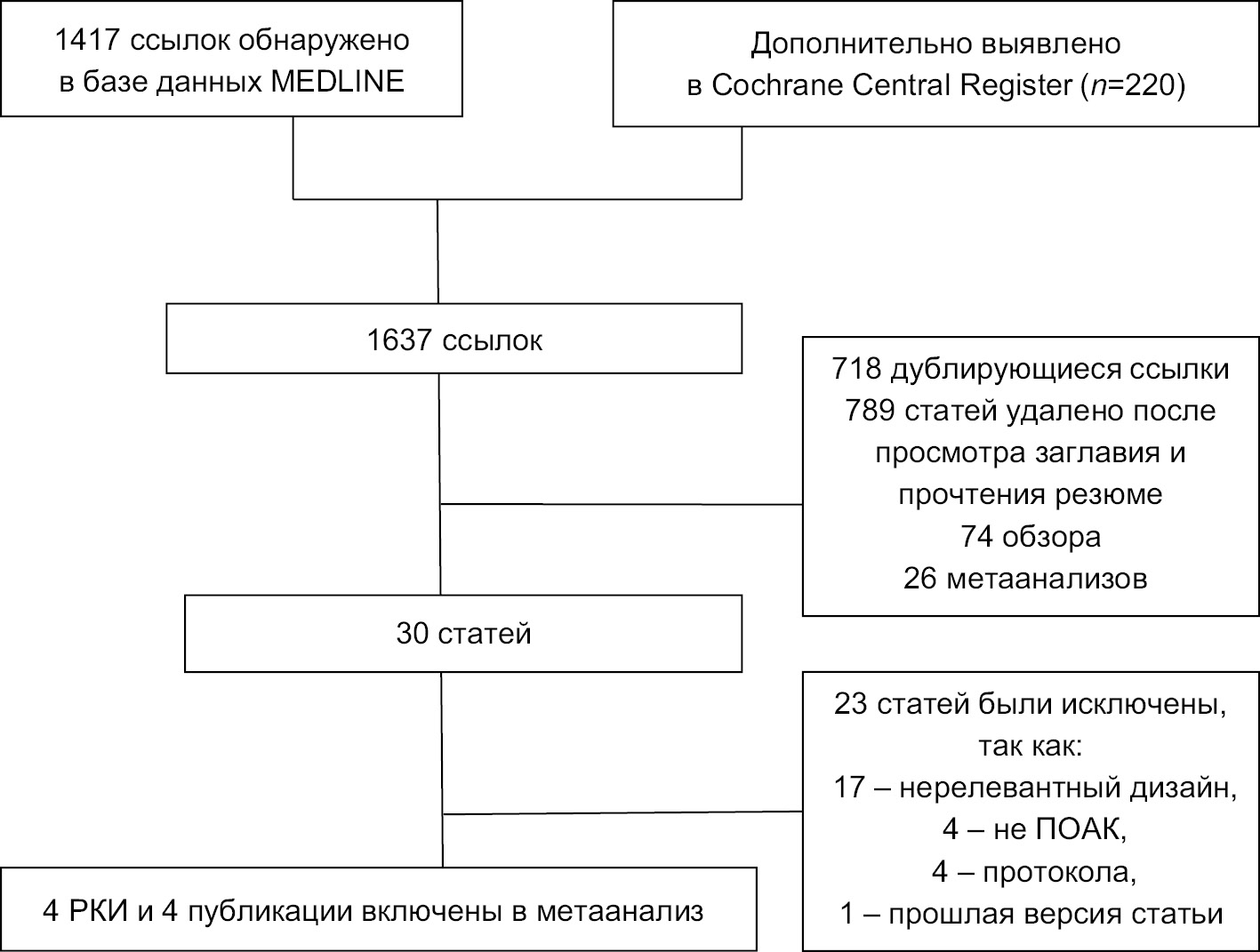РКИ – рандомизированное контролируемое исследование; ПОАК – прямые оральные антикоагулянты.