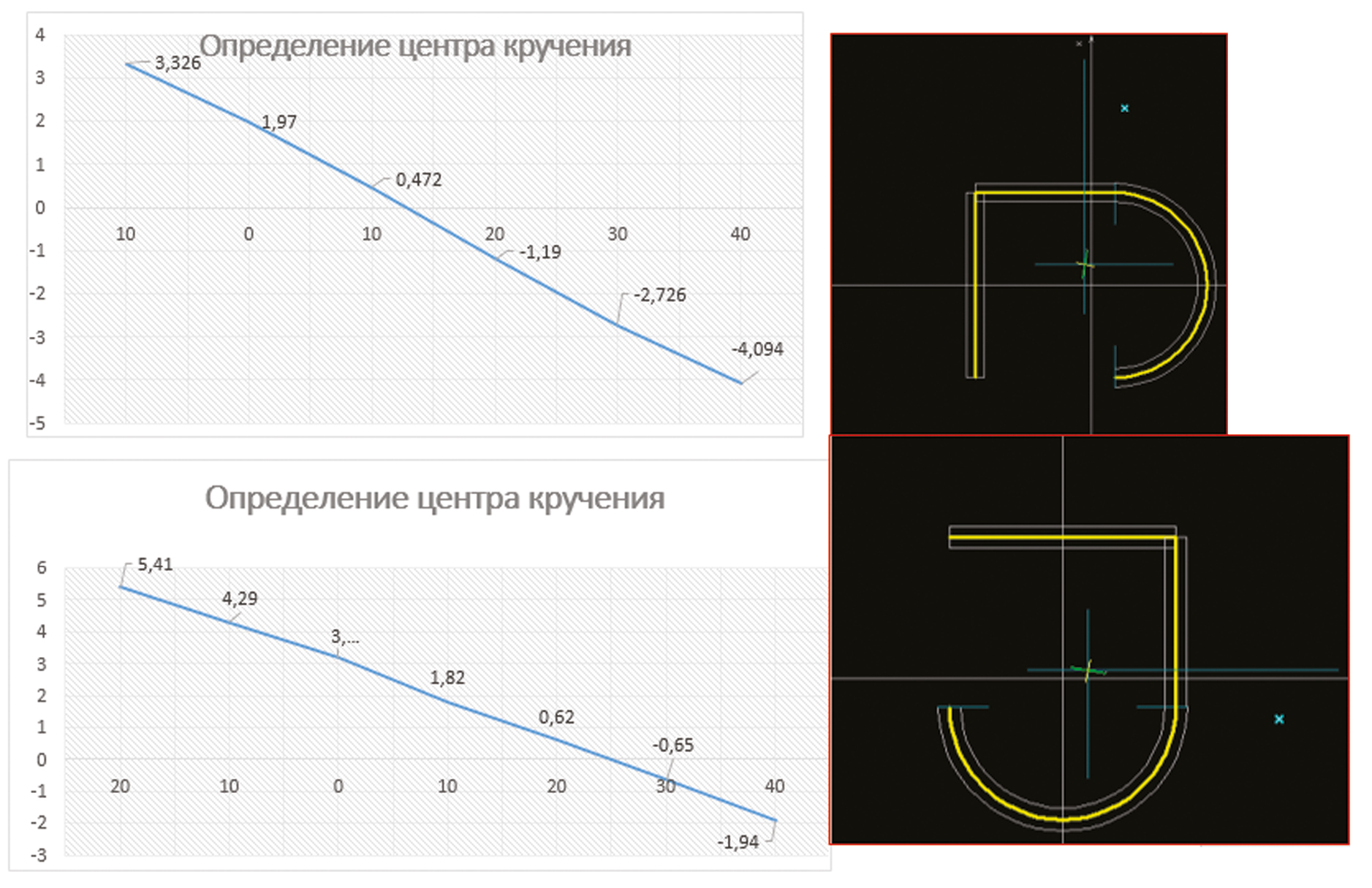 Рис. 9. Наглядное изучение центра кручения.