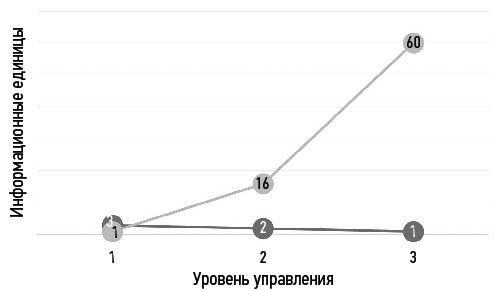 Интересен факт, что по мере роста первичной информации скорость ее прохождения и качество обработки увеличиваются, поскольку при ограничении численности экипажа места на управленческих уровнях занимают лица с все более высокой квалификацией.