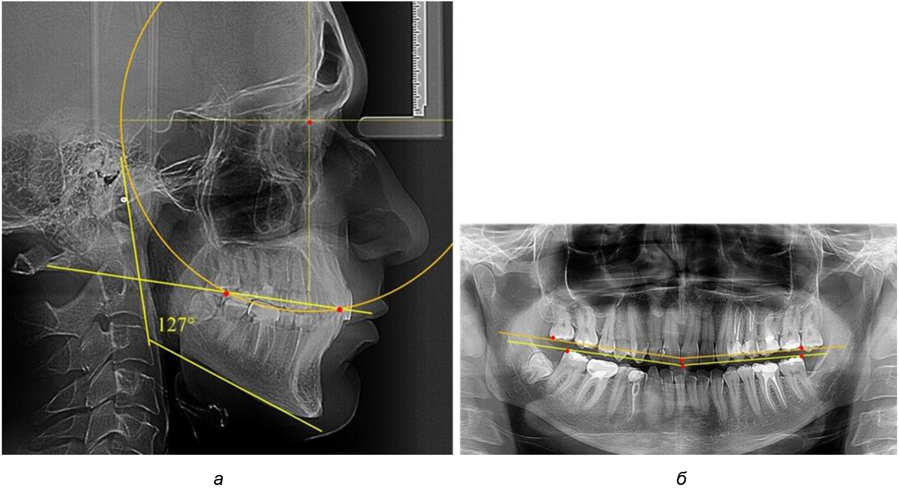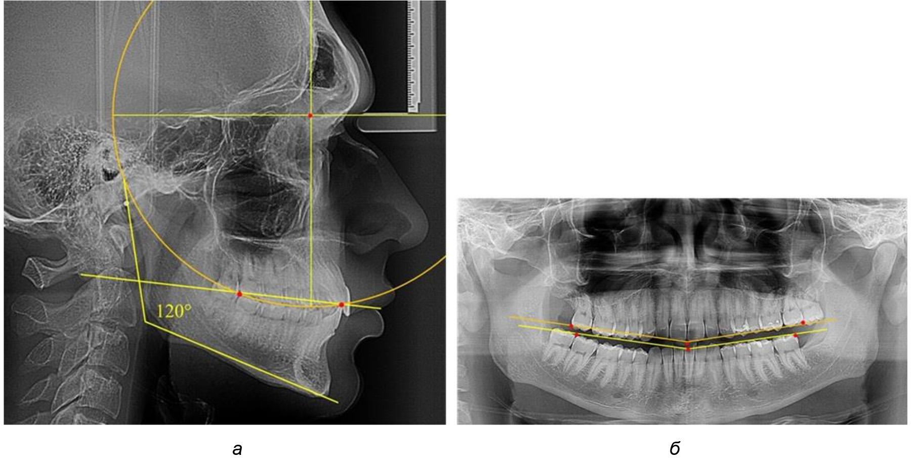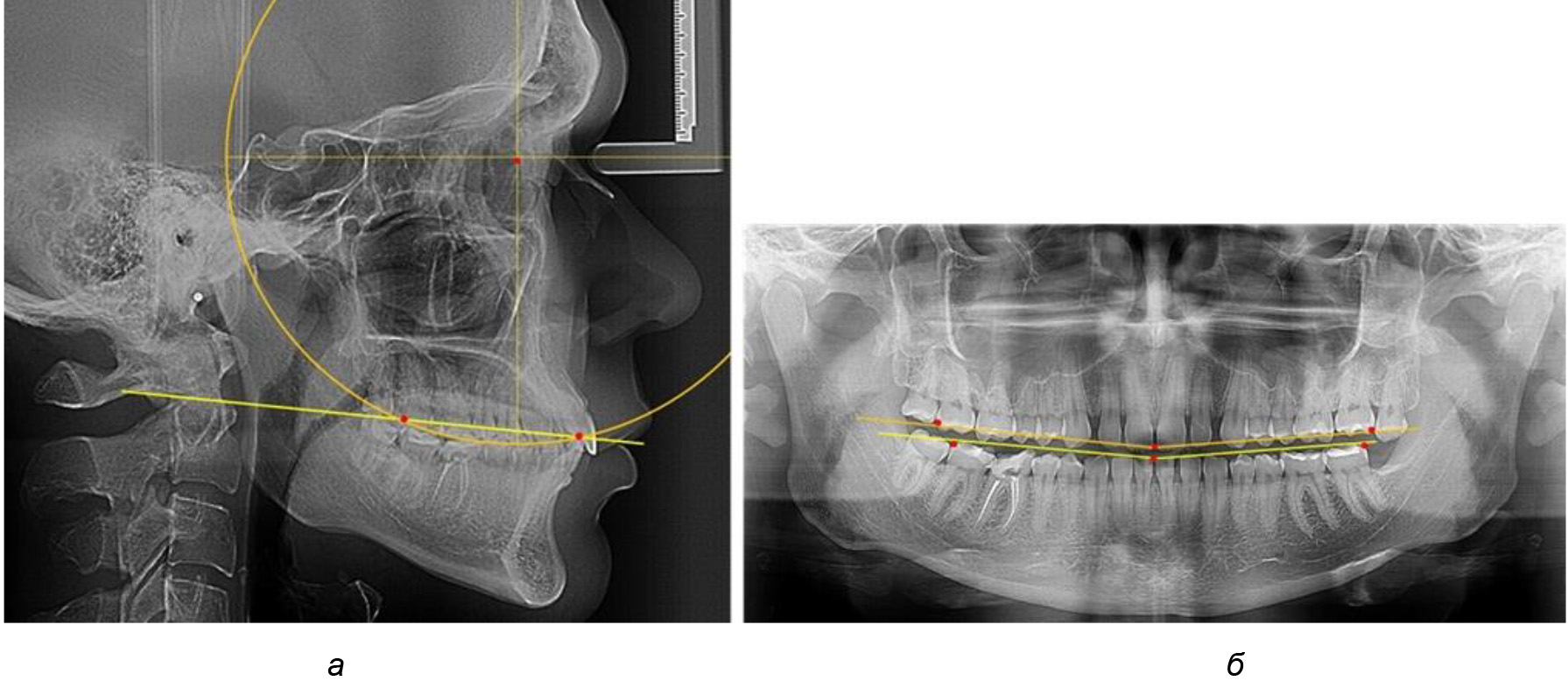 3. Рис. 2. Особенности кривой Spee на ТРГ (а) и ОПТГ (б) у людей с признаками вертикального роста