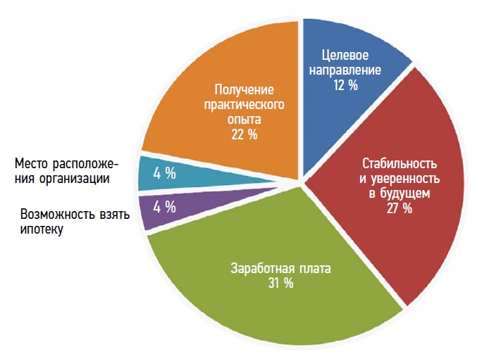Рис. 1. Критерии, которые учитывались при выборе работы на железнодорожном транспорте